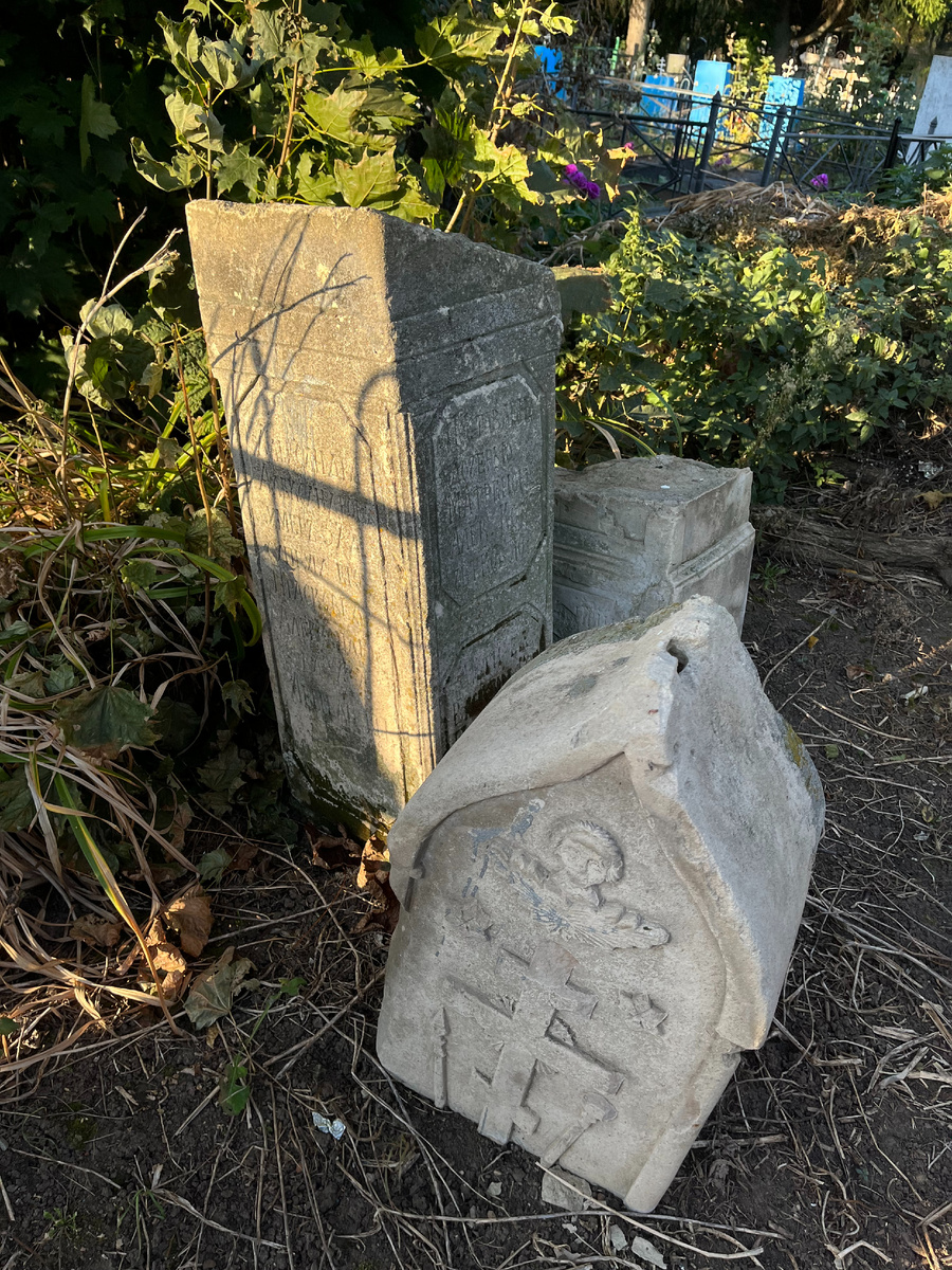 В поисках нужной мне информации, я несколько дней фотографировала найденные надгробия, возвращаясь к ним в надежде прочесть повреждённые следами времени надписи, разобрать фамилии, звания, даты… Некоторые камни сохранились почти идеально, простояв более 100-150 - ти лет, другие читаются сложнее и представляют из себя груду каменных фрагментов одной плиты. Какие-то остались нетронуты определённо на своих местах. Но есть и те, что вынесены за ограду, повалены, разбиты, снесены с разных участков в одно место и оставлены там, как бесхозные. Купцы, мещане, служащие, учителя, крестьяне… люди, жившие здесь и служившие городу Пронску. Возможно, что разрушенные плиты были смещены с мест захоронений именно во времена описываемых событий 34-го. В любом случае, теперь уже невозможно определить их точную принадлежность относительно захоронений. Но и они сами по себе являются объектами исторической ценности, и несут уникальную информацию о прончанах. Разве не должны мы попытаться сохранить их сегодня? Всесвятскую церковь уже не смогли.
