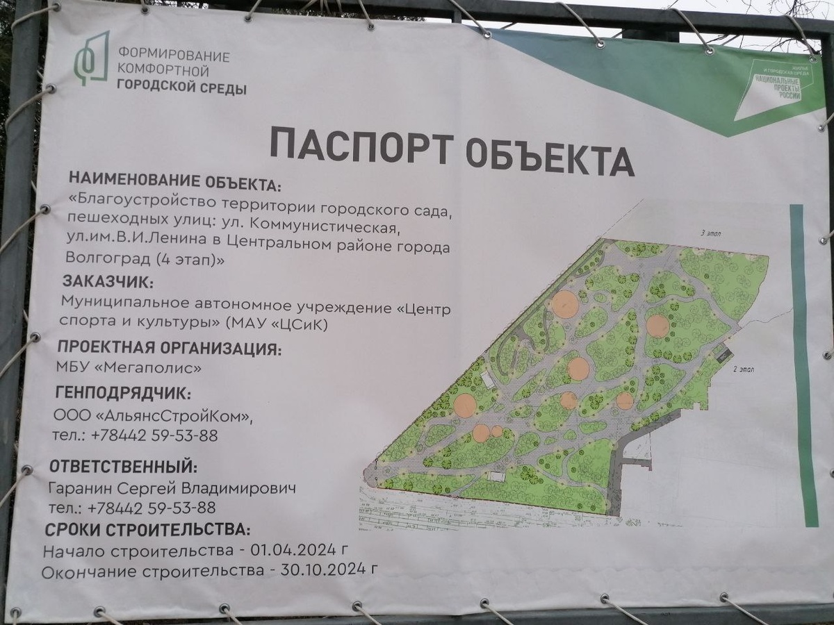В Волгограде получатель крупных контрактов на благоустройство территории Волгограда нарушил первоначальные сроки сдачи объекта по реконструкции Комсомольского сада.