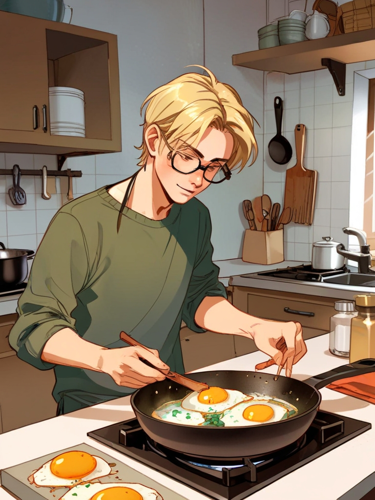 - Завтракать будешь? – спросил Кирилл, перекладывая еду из сковородки в тарелки.
