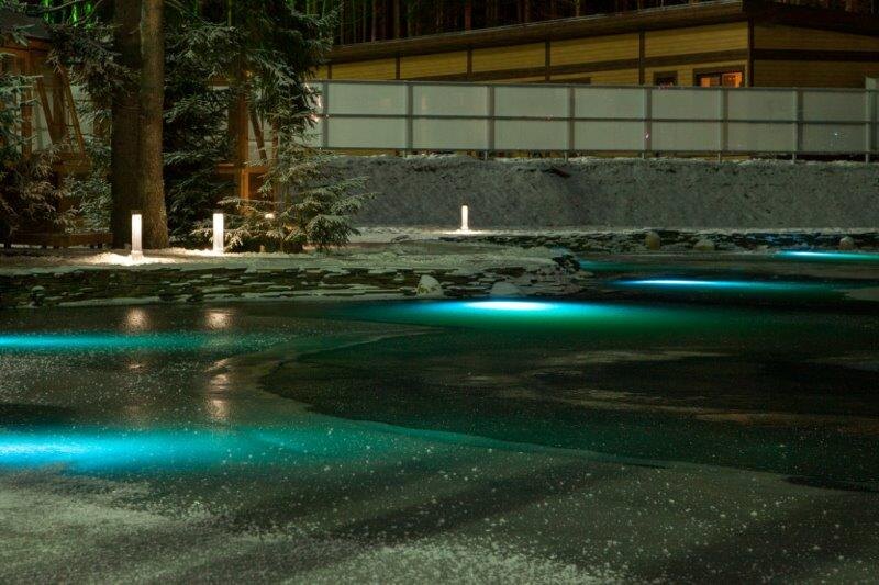 Для освещения сада сначала проектируется функциональное освещение. В первую очередь это подсветка дорожек, чтобы заказчики могли безопасно и комфортно передвигаться по саду. Самый популярный способ — использовать фонарики на ножках. Однако при выборе садовых светильников не стоит акцентировать внимание на их внешнем виде: хорошая система освещения должна быть заметна ночью, а не днём. Мы должны видеть только свет, а не сами светильники. Для функционального освещения дорожек лучше выбирать светильники, направленные вниз: они не слепят глаза и не излучают свет вверх. Большинство садовых светильников имеют верхние крышки, которые хорошо рассеивают свет. На ночных фотографиях некоторые светильники выглядят как яркие пятна, и это свидетельствует о том, что такие источники света мешают глазам адаптироваться к темноте. Нижняя подсветка дорожек деликатная, выполняет свою функцию и не мешает. Встроенные светильники в мощении, к сожалению, по нашему опыту, ненадёжны. Мы использовали разные вариа
