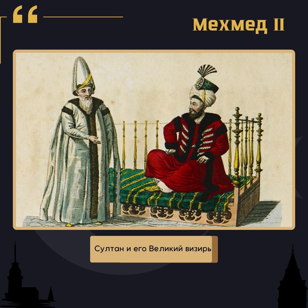 Второе правление и завоевание Константинополя В 1451 году, после смерти отца, Мехмед снова взошел на престол. И, естественно, он сразу же начал подготовку к захвату Константинополя. Сразу при вступлении на престол он приказал убить сына его мачехи, чтобы окончательно избавиться от конкурентов. В этот раз он был намного мудрее и хитрее. Поначалу он изображал перед европейскими послами миролюбие и неопытность, чтобы казаться безобидным. Одновременно Мехмед разобрался с внутренней оппозицией. Примечателен случай с Великим Визирем, который, будучи нечист на руку, принимал подарки от византийцев. Однажды ночью Мехмед нагрянул к нему, когда на столе лежала гора золота от только что ушедшего византийского посла. Визирь, понимавший, что его голова сейчас буквально покинет тело, в порядке бреда предложил Мехмеду золото. На что тот ответил крайне емко: Cултан не хочет золото, Султан хочет Константинополь. Так Великий Визирь стал самым ярым сторонником захвата Константинополя.