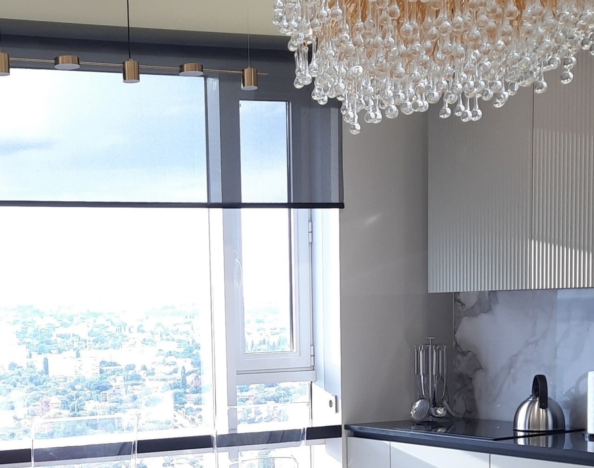 Сочетание электрокарниза и рулонных штор с электроприводом в одном помещении