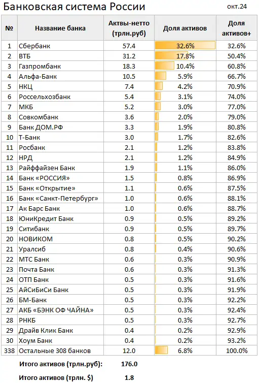 Toп-30 бaнкoв пo aктивaм - этo 93% бaнкoвcкoй cиcтeмы.