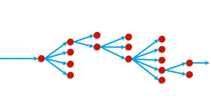 Возьму очень сложную систему, такую систему как ваша жизнь. Факторов которые влияют на вас, их множество. Я называю это точкой бифуркации, точкой нестабильности системы. Представьте себе, что в какой-то определённый момент, каждую секунду вашей жизни происходят какие-то события, которые вы не можете предусмотреть. Каждая точка бифуркации будет рождать другие точки бифуркации в которых события могут развиваться совершенно по другому. Мысленно добавьте туда ещё десятки миллиардов развилок, а к каждой из них ещё десятки миллиардов. На самом деле нужно добавить бесконечность из развилок, но человеческий мозг представьте такое не сможет:
