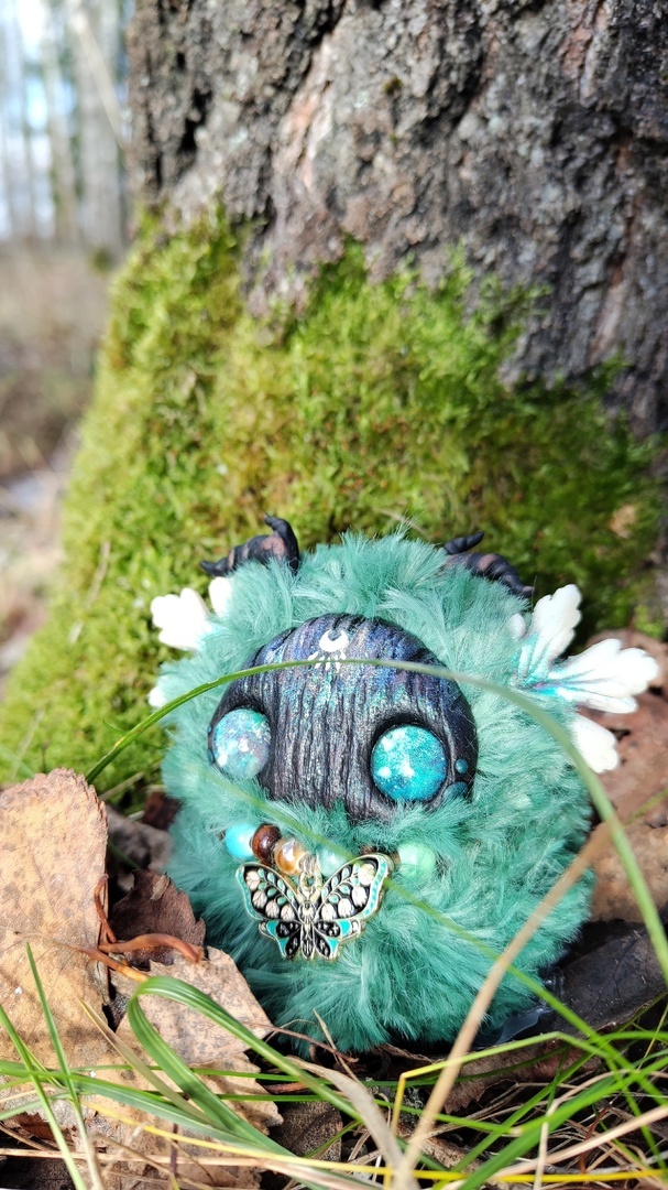 Не могу не поделиться с вами этой прелестью! Игрушки ручной работы – это отдельный вид искусства! И если с куклами у меня не задалось с детства, то вот с такими прелестными малышами так и хочется углубиться в мир фантазий и придумать нечто забавное и милое! Знакомьтесь! Это Древесный дух и его Мотылек ночных ландышей. В семье как-то само по себе укрепилось название Шушик, хотя у автора этой работы так называются другие модели. Как я поняла, автор создает их с помощью техники плетения из специальной нити. Видимо, работа выполняется с помощью крючка. Кто знает – поправьте меня в комментариях. Но мне кажется, что это именно так. А потому он вызывает у меня еще больший восторг, потому как этот вид рукоделия я признаю для себя отдельным орудием пыток. Еще со спицами я как-то справляюсь, вязала пару шарфов, но крючок… В общем, мое почтение всем тем, кто обладает этой магией! Когда я его увидела, я сразу поняла - это мой малыш! И, как написала ранее, сразу начала придумывать, как лучше его по