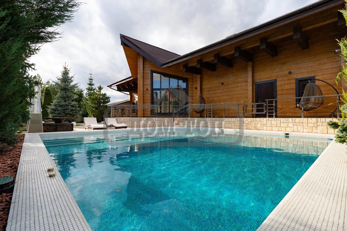 Сдается современный коттедж в стиле шале с уличным бассейном посуточно и на выходные. Возможна аренда на месяц. Дом находится в 10 км от МКАД по Новорижскому или Волоколамскому шоссе УЧАСТОК: облагороженный 8 соток. Высажен газон. Вымощены дорожки. Посажены лиственные и хвойный деревья. Уютная беседка с диванчиками и столиком на 15-20 персон с подсветкой. Шезлонги. Открытый УЛИЧНЫЙ БАССЕЙН подогреваемый круглый год бассейн. Зона барбекю (мангал, казан, газовый гриль). Русская баня на дровах. Костровая чаша. Парковка. В ДОМЕ: 400 кв.м., 2 этажа, 5 дизайнерских спален по эксклюзивному проекту, до 15 спальных мест, 5 с/у (автоматические унитазы, английский мрамор и панорамные зеркала), кондиционеры. Терраса с садовыми качелями. Гостиная на 25 персон с высокими потолками и вторым светом, кухня с необходимой посудой и техникой, обеденная зона. На 2-м этаже спальни. РАЗВЛЕЧЕНИЯ: баня, уличный бассейн, подогреваемый ежегодно, баня, костровая чаша, телевизор, интерент. СТОИМОСТЬ з
