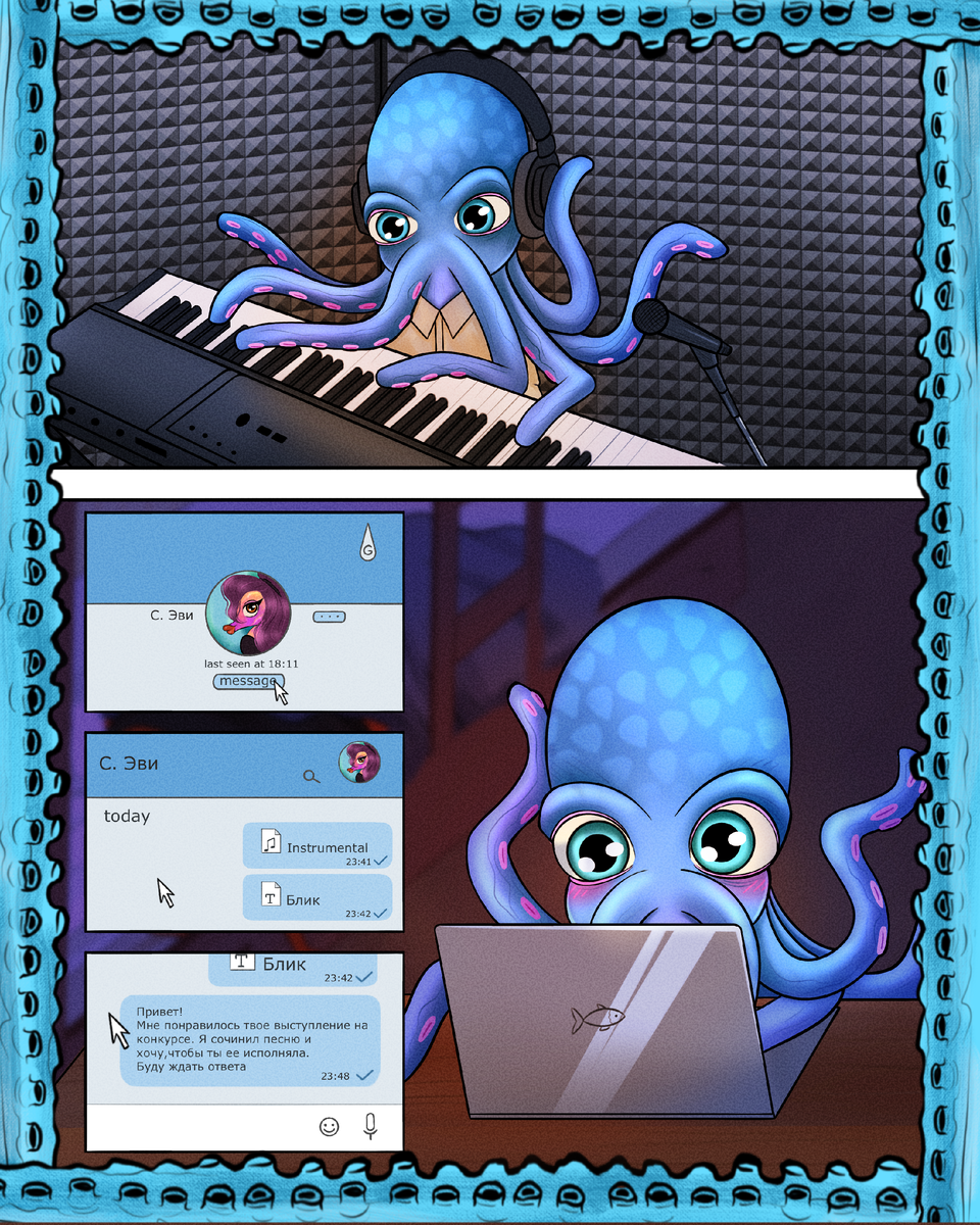 Мистер Октопус закончил работу над текстом и музыкой, и теперь для полноты композиции не хватает лишь чарующего вокала Эви