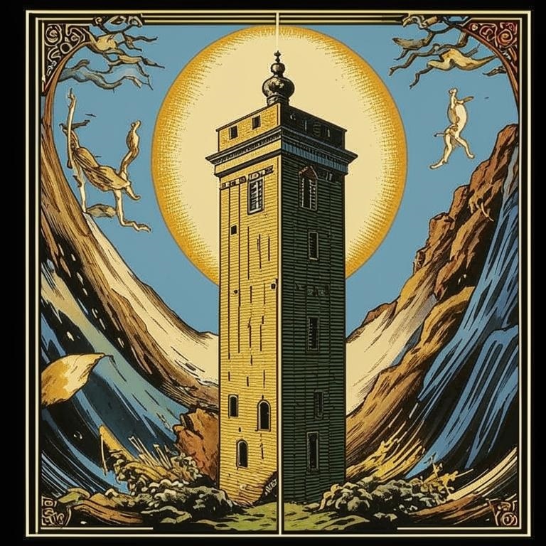 Сегодня я хочу поговорить о карте Таро под названием «Башня». Общепринятое значение этой карты – разрушение. Но когда я вошла в мир этой карты, то оказалось, что там происходило нечто большее. Я оказалась перед огромной башней, которая напоминала Вавилонскую. На улице был сильный дождь, сверкали молнии, гремел гром, а ветер буквально рвался в стороны. Молния многократно ударяла в башню, и я видела, как люди в панике бегают вокруг, охваченные страхом и непониманием происходящего. Затем я почувствовала дрожь земли – началось землетрясение. Земля словно разверзлась, стремясь поглотить здание. Люди падали, кричали от ужаса, валялись повсюду деньги, драгоценности, золото Все бросалось в спешке, каждый старался спастись, не зная, куда бежать. Вдруг земля раскрыла свою пасть и поглотила здание. В этот миг гроза прекратилась, и на небе показалось солнце. Там, где раньше возвышалась башня, теперь зияла огромная воронка. Я стояла и смотрела, как постепенно к этому месту начали подходить люди. О