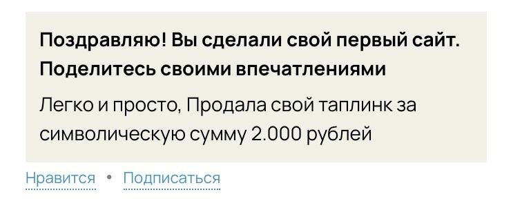 Давайте посчитаем Наша ученица продала сайт за 2000₽. Сделать такой можно всего 1 час. Если бы она работала полный рабочий день 8 часов, то смогла бы заработать 16К 😍 Сайты на Taplink создавать «легко и просто» 👌 Об этом говорят все наши ученики «Фриланс-старт» ❗️ Плюс они после курса умеют собирать чат-ботов 👍 А это ещё один источник дохода. Если надоело сайты делать, можно переключить внимание на чат-боты. Зарегистрироваться на наш мини-курс «Фриланс-Старт» можно прямо сейчас 👇 ЖМИТЕ ЗДЕСЬ И уже через 3 дня у вас будет два востребованных навыка и возможность зарабатывать 2000₽ в час 😍 🎁Регистрируйтесь на наш бесплатный курс по старту на фрилансе Зарегистрироваться по ссылке👇