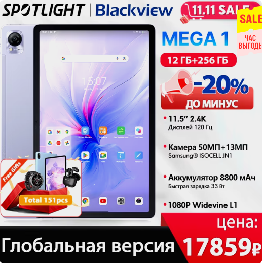 Сегодня мы окунемся в фантастический мир Blackview Mega 1. Этот стильный планшет, выпущенный в марте 2024 года, оснащен множеством функций, которые делают его незаменимым для тех, кто хочет сочетать мощность, производительность и портативность. Давайте разберемся, что же делает это устройство таким особенным! Лаконичный и стильный дизайн Начнем с того, что Blackview Mega 1 - это потрясающее устройство. При весе 528 г и толщине всего 7,6 мм оно легкое и тонкое, поэтому его легко носить с собой, независимо от того, едете ли вы на работу, в путешествие или просто отдыхаете дома. Планшет оснащен 11,5-дюймовым IPS-ЖК-экраном с разрешением 1200x2000 пикселей, что обеспечивает яркое и четкое изображение. Кроме того, частота обновления 120 Гц гарантирует плавную прокрутку и общее ощущение свежести. Потрясающая производительность Под капотом Blackview Mega 1 работает на базе чипсета MediaTek Helio G99. Этот восьмиядерный процессор (2x2,2 ГГц Cortex-A76 и 6x2,0 ГГц Cortex-A55) в сочетании с граф