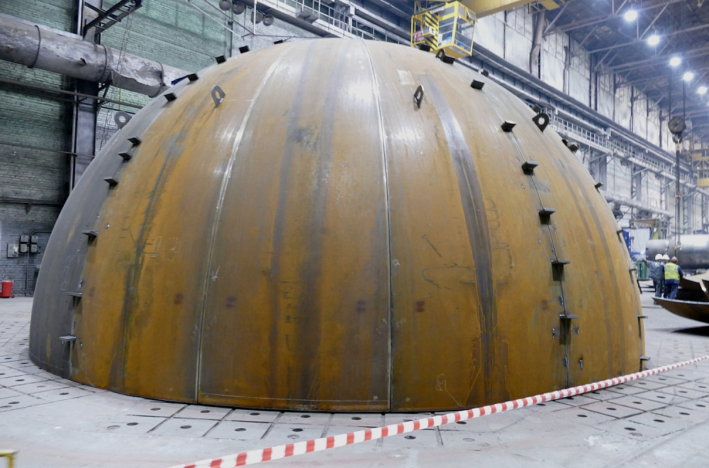 Корпус шарового реактора состоит из 18 сферических сегментов, каждый из которых был получен методом холодной вальцовки на единственном в стране стане, расположенном на предприятии АО "Уралхиммаш". Технологии и уникальные компетенции специалистов компании, необходимые для выпуска шаровых емкостей, делают производство данного оборудования по-настоящему уникальным.