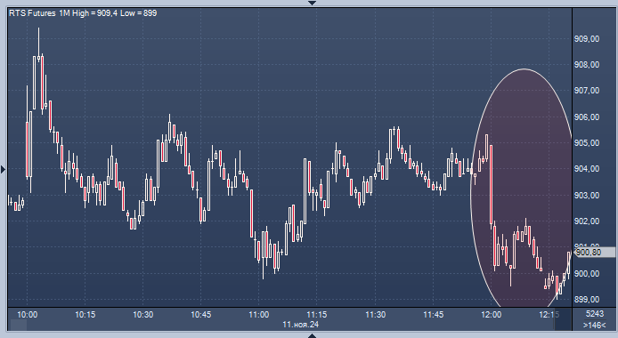 Песков опроверг информацию о состоявшемся телефонном разговоре Путина и Трампа График фьючерса на индекс RTS интервалами в 1 минуту В пятницу на вечерней сессии акции выросли, когда появилаь информация о разговоре, теперь все происходит наоборот. Дмитрий Песков опроверг информацию о телефонном разговоре между президентом России Владимиром Путиным и избранным президентом США Дональдом Трампом. «Не было разговора», — сказал Песков журналистам в понедельник, отвечая на соответствующий вопрос.«Это наиболее наглядный пример качества той информации, которая сейчас публикуется иногда даже в достаточно уважаемых изданиях. Это полностью не соответствует действительности. Это чистая выдумка, это просто ложная информация», — подчеркнул он. У представителя Кремля в очередной раз поинтересовались, не планирует ли Путин контактов с Трампом. «Опять же хочу вас переадресовать к словам президента, сказанным на "Валдае". Пока каких-то конкретных планов нет», — сказал Песков. Ранее газета The Washington