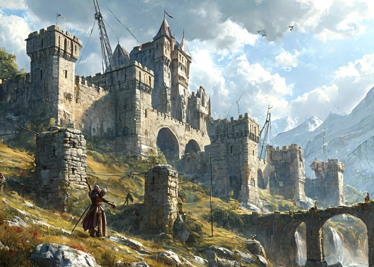 В какой-то момент, одна из огромных глыб, запущенных требушетом, расколола каменный блок в крепостной стене. Укрепления города покачнулись, и видимо часть отколотого блока рухнула внутрь. Это ослабило всю и без того расшатанную кладку. Следующий валун, влетев в стену, окончательно разбил сколотый блок. Каменная стена из блоков, жалобно заскрежетала и целым куском, обрушилась внутрь города. Видимо дневная атака сильно расшатала этот участок стены, что и послужило его обрушению.