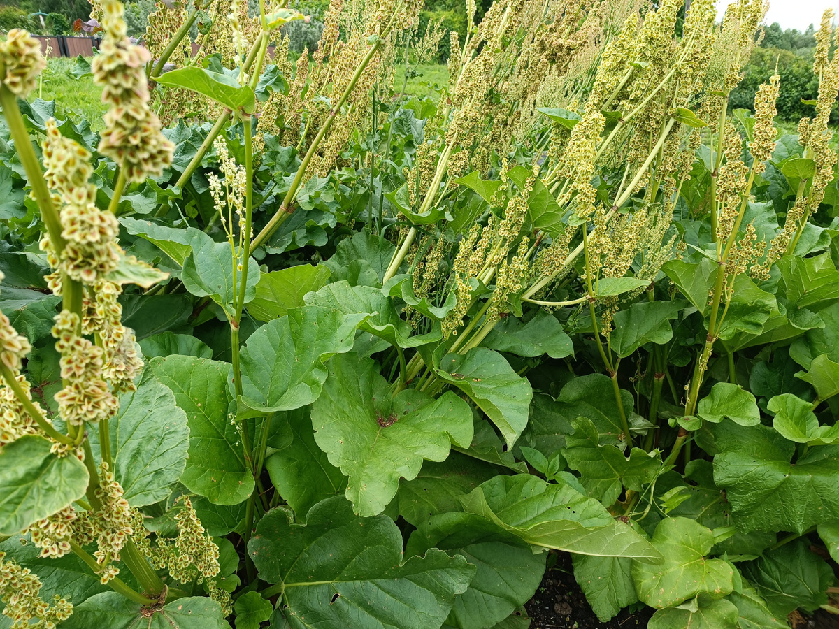 На второй год ревень начинает закладывать цветоносы. Их лучше удалять, если вы не собираетесь размножать растение семенами. Кроме этого, надо помнить, что ревень перекрестноопыляемое растение, это значит, для чистоты эксперимента и сохранения сорта надо выращивать разные сорты на определенном отдалении, чтобы они не переопылялись. Хотя, возможно, вы захотите создать свои гибриды, тогда можно не думать об этом.