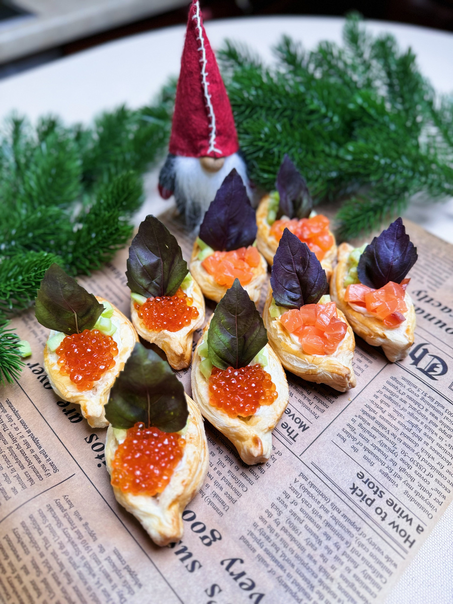Я и сама всегда с особым трепетом жду этого праздника. А так как мы сейчас ведем кулинарный блог, то хочется с вами поделиться интересными идеями новогодних блюд, поэтому подписывайтесь на наш канал, чтобы не пропустить их. Начнем с закусок – лодочки из слоеного теста с добавлением творожного сыра, свежего огурчика и икры (либо слабосолёной рыбки). Скажу честно, они безумного вкусные и все ингредиенты идеально дополняют друг друга.