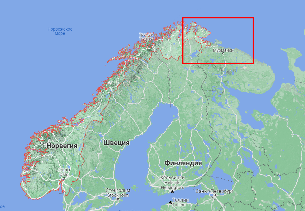 Для понимания, о каких местах идет речь, покажу карту. Речь о той суровой части Кольского полуострова, которую омывает Баренцево море.