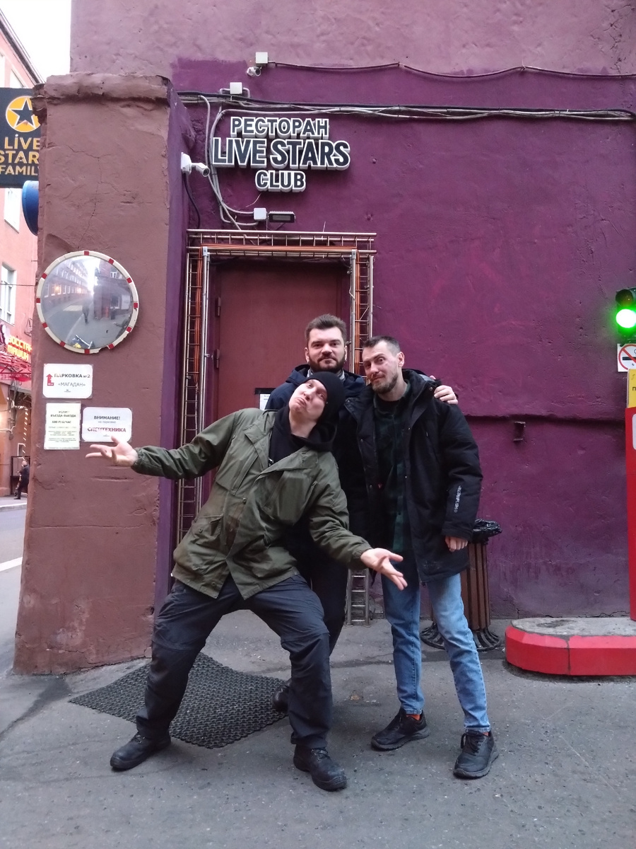 Презентация альбома в столице – дело ответственное и приоритетное. Поэтому не смутило даже, что в воскресенье концерт, перед рабочей неделей. В субботу вечерком дружно погрузились в поезд и двинулись в сторону Москвы. Доехали без приключений, слегка помятые с недосыпа и радости встречи, но вполне пригодные к участию в концерте. Начало выступления было раннее, ибо и на обратный поезд успеть нужно было, поэтому уже около 16 часов завалились в клуб на чек. Я для себя внезапно открыла, что это не тот клуб, что представился мне вначале. Дело в том, что раньше группа выступала практически всегда в Glastonberry, а в этот раз какие-то организационные моменты привели к выбору другой площадки – Live Stars. Мне пришли на ум флэшбеки, где на прошлогоднем хэллоуине гораздо меньше зрителей, чем обычно собирают ребята, еле умещались и толкались между столиками. Вообразила, что будет, если планируемое количество зрителей Infornal FuckЪ попытаться туда запихнуть. Получилось нечто среднее между 5 кругом
