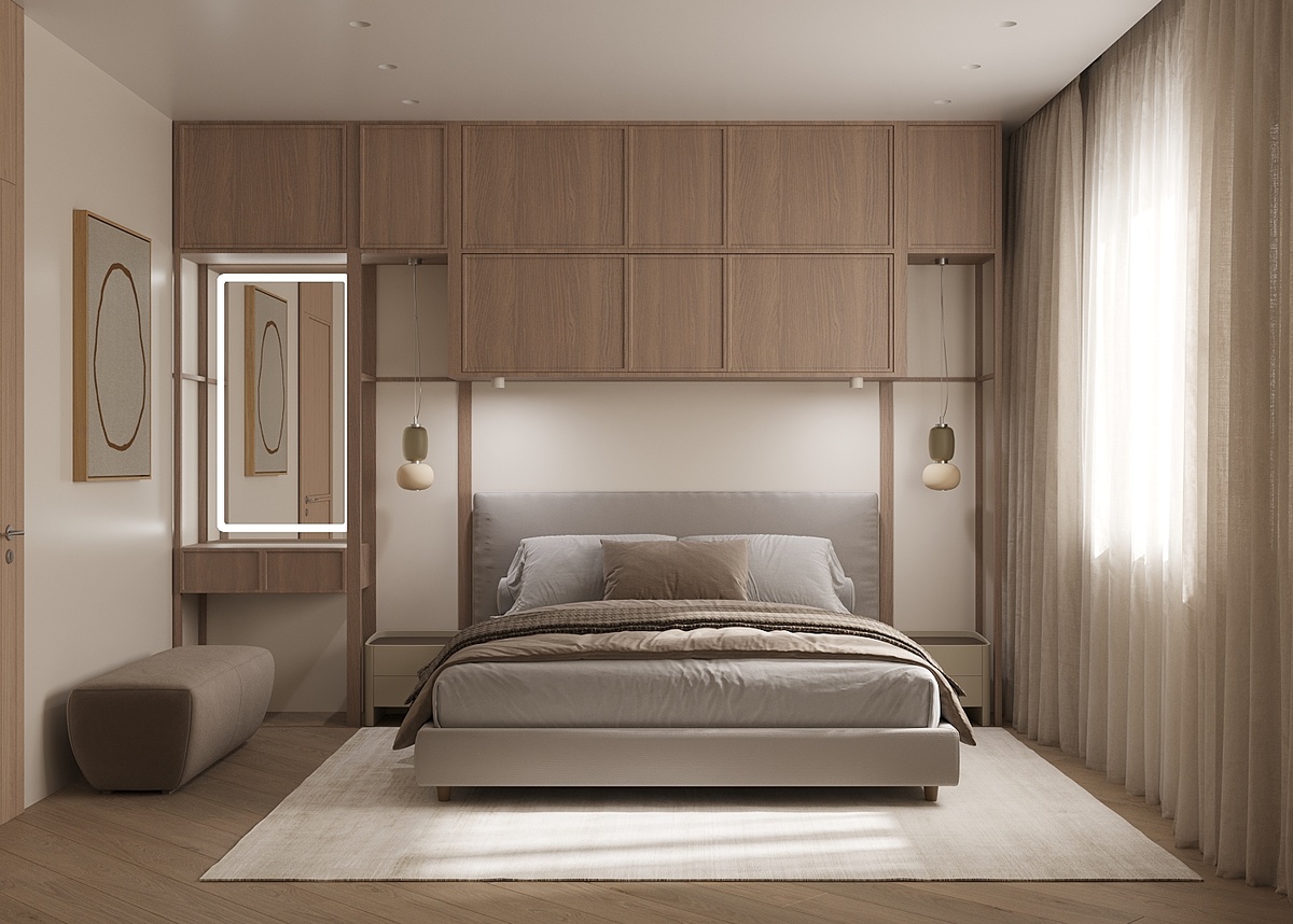 Я родилась и выросла во Владивостоке. Близость к стране восходящего солнца оставило неизгладимое впечатление в моей жизни. Я много раз посещала Японию и у меня осталось очень много теплых воспоминаний об этой стране. У меня сформировался свой ассоциативный ряд об этом месте и его особенностях. Поэтому, когда ко мне обратилась клиентка с идей оформить свою московскую квартиру с нотками японского стиля, то меня было уже не удержать от полета мыслей и идей. Это было очень увлекательно, потому что мы много делились впечатлениями о стране восходящего солнца. Обменивались опытами путешествий по этой удивительной стране. Обсуждали, как весь этот ассоциативный ряд совместить и уместить в интерьере. Я вам скажу – это было масштабное исследование, полное открытий и экспериментов. Основным материал проекта «Маленькая Япония» послужило дерево. В Японии это предпочтительный материал для отделки, строительства и имеет сакральное значение для ее жителей. Стены в комнатах выкрашены бежевой краской, чт