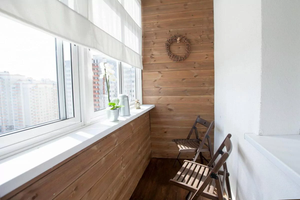 Лоджия или балкон являются для многих приоритетным фактором при покупке жилья. Для кого-то это дополнительное место для хранения, для кого-то полноценная комната отдыха. Даже небольшую по размеру лоджию можно уютно, комфортно обустроить. При ее отделке нужно учитывать некоторые важные моменты, которые непосредственно влияют на выбор материалов. Во-первых – перепады температур. Во-вторых – повышенная влажность. В-третьих – прямое воздействие солнечных лучей. Самый частый вариант отделки – отделка панелями ПВХ. Это достаточно просто, не дорого, легко в уходе. Еще достаточно часто можно встретить просто окрашенные бетонные стены, пожалуй это самый простой способ отделки. Мы же предлагаем рассмотреть возможность оформления лоджии или балкона термодревесиной. Это практично, стильной и экологично. Термически обработанная древесина имеет улучшенные характеристики. Она долговечна; имеет повышенную прочность; устойчивость к влаге, грибкам и плесени; геометрически стабильна. Также она создают до