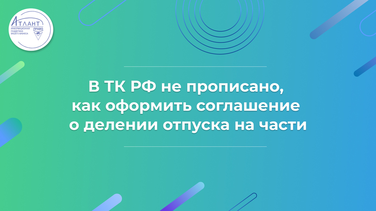 В ТК РФ не прописано, как оформить соглашение о делении отпуска на части