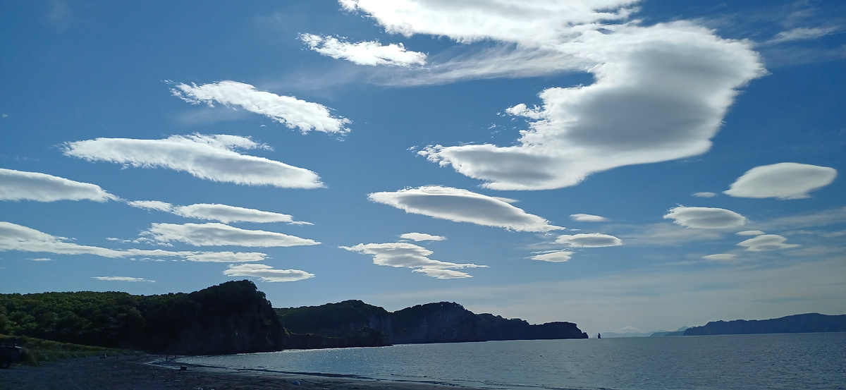 В небе над Камчаткой частенько можно наблюдать необычное явление: кажется, что над полуостровом зависло сразу несколько НЛО в виде летающих тарелок. Что это - миражи или какие-то другие природные явления? Расскажу вам подробнее. В день прилета в аэропорт Елизово Камчатка встречала нас отличной погодой - яркое солнце, голубое небо, на фоне "домашних" вулканов - Авачинского Корякского и Козельского - легкие облачка... Все это очень радовало, но в то же время было что-то необычное в форме облаков и в том факте, что они не перемещались по небу, а как будто зависли в одном положении... Увлекшись рассматриванием вулканов, которые в районе аэропорта в хорошую погоду смотрятся просто восхитительно, тем более для туристов, первый раз сошедших с трапа самолета на Камчатке, мы поначалу не придали облакам особого внимания. Но когда отправились из аэропорта на мыс Маячный, то на каждой смотровой площадке не переставали восхищаться их необычностью. Ну и, конечно же, спросили у нашего гида, почему