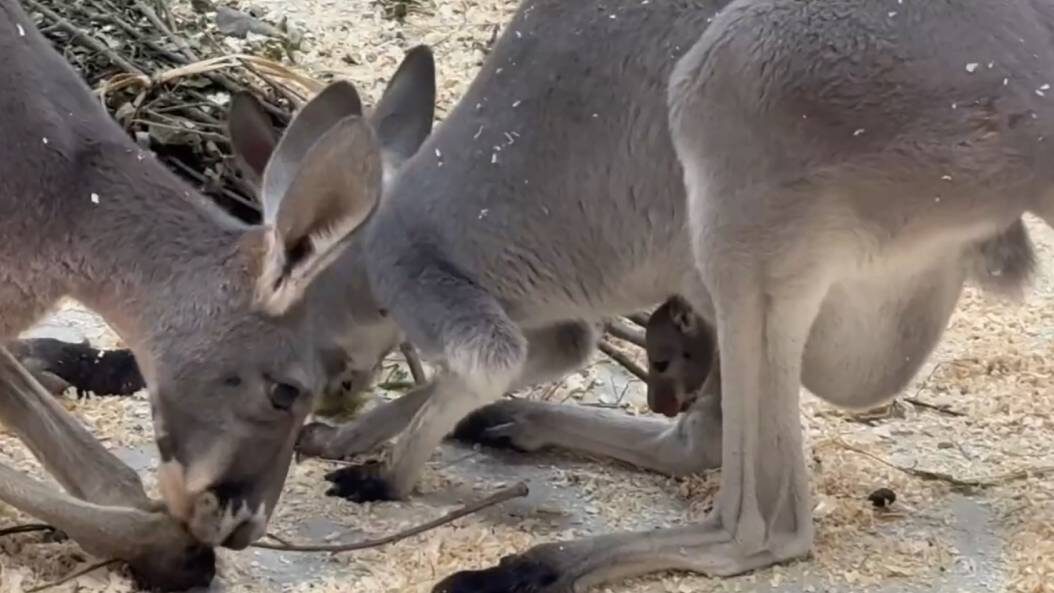 В Пермском зоопарке у пары больших рыжих кенгуру Рона и Джинни родился малыш. Сумчатые приехали в Пермь летом 2024 года. Сейчас молодая семья обитает в вольерах на территории нового зоопарка. Как рассказали специалисты зоопарка, при рождении кенгуренок самостоятельно добирается до сумки на животе матери, используя свои цепкие коготки. Внутри сумки малыш повисает на соске, получая молоко. Малыш Рона и Джинни сейчас только начал выглядывать из маминой сумки, в которой жил полгода. Выбираться из сумки он начнет только через месяц, тогда и можно будет определить его пол, вес и рост.
