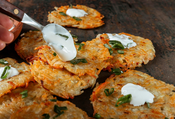 Картофельные драники — это классическое блюдо восточноевропейской кухни, которое любимо многими поколениями. Хрустящие снаружи и мягкие внутри, они подаются с различными соусами, сметаной или даже мясом. Драники — это идеальное блюдо для быстрого обеда или ужина, и они не требуют множества ингредиентов, что делает их доступными для приготовления даже на скорую руку. Сегодня мы поделимся с вами рецептом картофельных драников с чесночным соусом, который станет настоящим кулинарным хитом на вашем столе. Для драников: Для чесночного соуса: Начнем с того, что очистим картофель и натрем его на крупной терке. Если вы хотите, чтобы драники были более воздушными, можно натереть картошку на мелкой терке. Важно, чтобы картофель не потемнел, поэтому сразу после натирания нужно отжать из него лишнюю влагу. Это можно сделать с помощью марли или просто руками. Также натираем лук. Некоторые предпочитают добавлять его в тесто для драников для дополнительного аромата, другие — на выходе, в уже готовые д