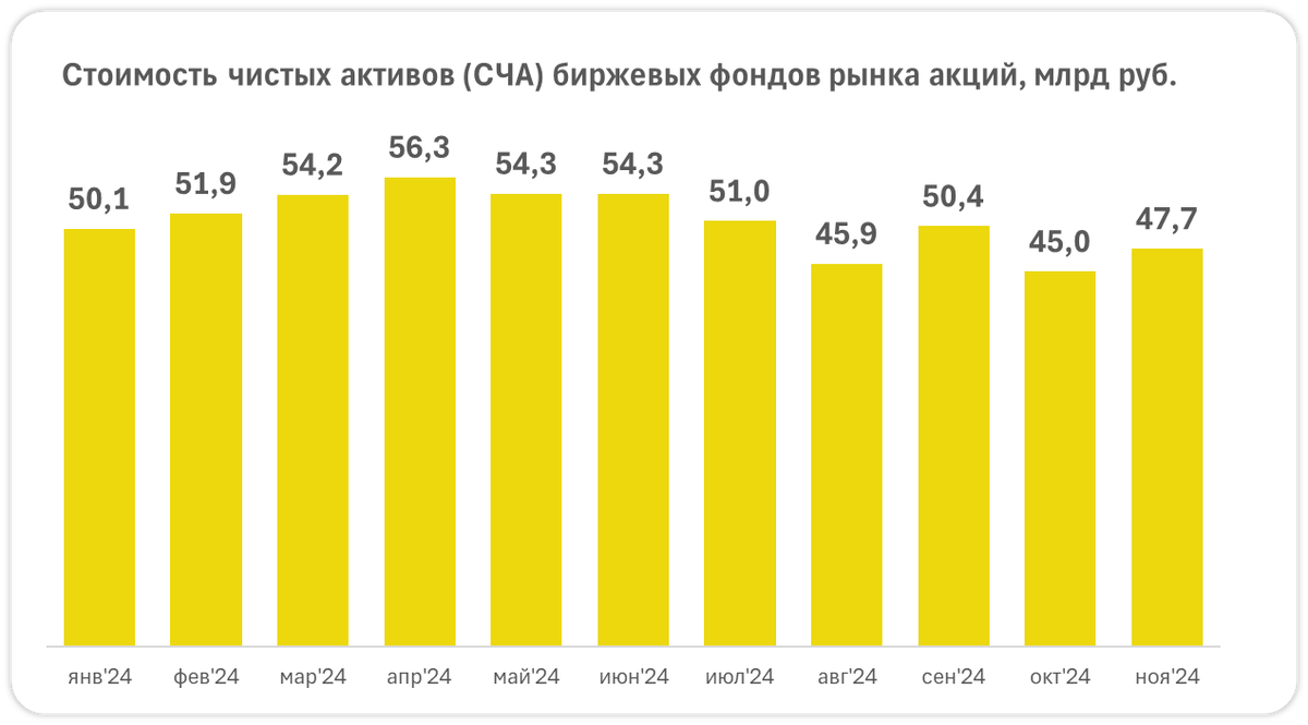 Стоимость чистых активов (СЧА) биржевых фондов рынка акций, млрд руб.