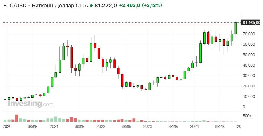 Сегодня он дорог как никогда, бьет очередные исторические уровни. Новый рекорд - $81,8к Трамп обещал не просто обеспечить нормальное регулирование криптовалют с учетом мнений участников рынка, но и немедленно снять с поста нынешнего главу SEC (Комиссии по ценным бумагам и биржам) Гэри Генслера, известного своим скептическим отношением к крипте, и создать нацрезерв США в криптовалютах.
