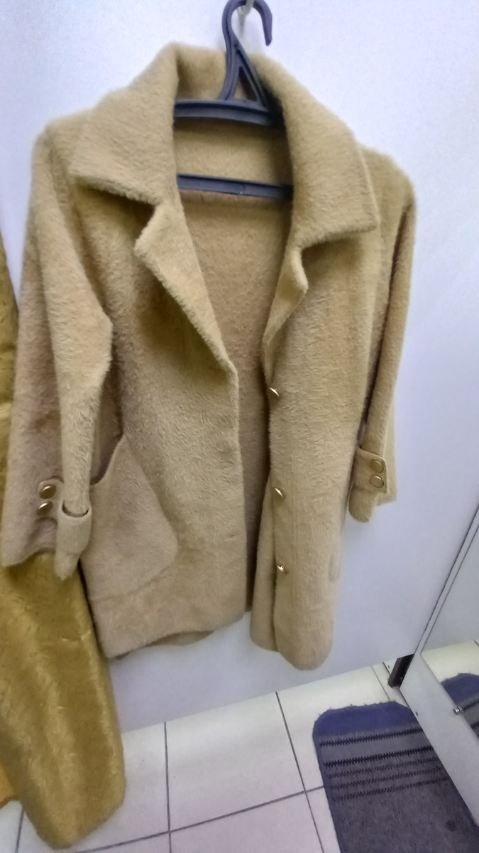 Здравствуйте всем читающим. Поступления этой недели, обзор третий, заключительный. И у меня вопрос по ценообразованию: почему это пальто неизвестного происхождения и состава оценили в 3000 рублей, в 2 раза дороже, чем синее из шерсти, кашемира и шелка? Есть конкретные причины, или просто так вышло? Свои соображения пишите в комментариях. Пальто ярлыков никаких не имеет, без подкладки, состояние хорошее, размер 52. Саша С, большая часть вещи за спиной собрана. Раз первая вещь была бежевого цвета, то и остальные вещи постараюсь подобрать в бежево-белой гамме. И снега хочется, и покупка была одного из оттенков белого. Шерстяной свитер российского производства, зефирного цвета. В хорошем состоянии, мягкий, удобный. Сама не знаю, почему не купила. Бежевый джемпер мужского кроя, бежево-коричневый. Насчет ТМ никакой информации не нашла, состояние идеальное. Под вырез у меня футболка подходящая есть, но вот сам джемпер очень некомфортный. Вроде и указано, что 100% шерсть, но по ощущени
