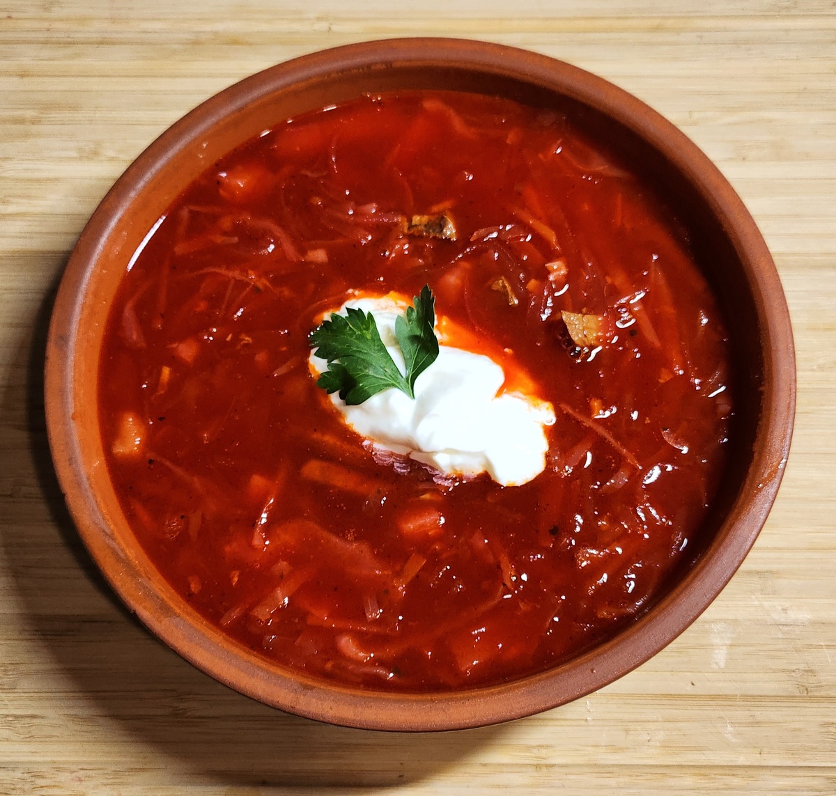 Давай приготовим борщ, вкусный, сытный, яркий суп, который имеет не повторимый, ни с чем не сравнимый вкус и аромат. На кастрюлю 5 л. Говядина ( окорок ) 700 гр. Капуста белокочанная 700 гр. Картофель 700 гр. Лук репчатый 180гр. Морковь 220 гр. Свёкла 650 гр. Томатная паста 250 мл. Уксус 9% 30мл. Сахар 50 гр. Соль 10 гр. Чеснок 7 зубчиков. Масло подсолнечное 30 мл. Для бульона : Морковь 100 гр. Лук репчатый 100 гр. Свекла 100 гр. Перец горошком по вкусу. Наваристый бульон, главный секрет вкусного супа, не только борща. Говядину вместе с овощами (для бульона) отправляем вариться на 2 часа. На разогретую сковороду наливаем масло и отправляем обжариваться заранее натертую свеклу в течение 7 минут. Теперь добавляем томатную пасту (150 мл) к свекле и обжариваем в течении 5 минут. Вливаем 200 мл воды, соль, сахар убавляем огонь до маленького, накрываем крышкой и тушим в течении 25 минут. Следите за жидкостью в свекле, при необходимости вливайте воду в малых объёмах. Теперь добавляем у