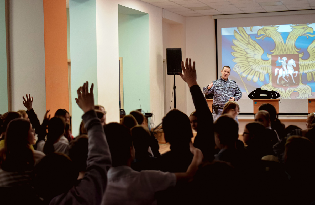 В Нижнем Новгороде сотрудник Росгвардии побеседовал со школьниками о подростковом буллинге