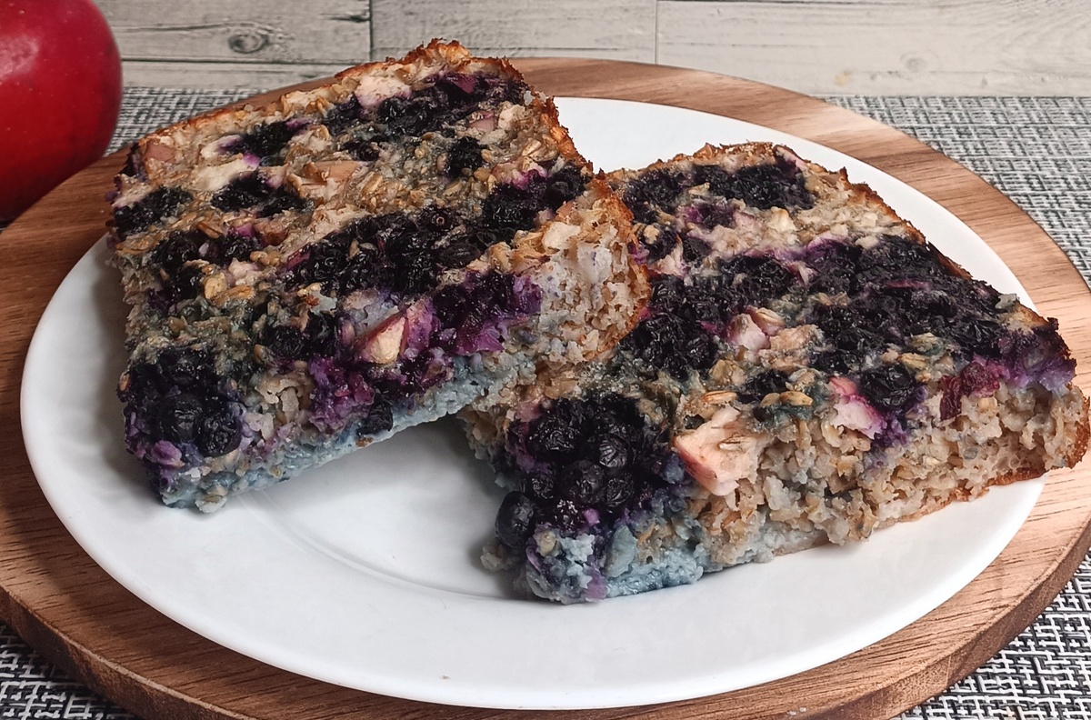 Этот пирог не только оооочень вкусный и мега-полезный ,но и такой сытный!Съев полпирога на завтрак,вы забудете про чувство голода минимум на 4 часа) КБЖУ на 100 гр:ккал. 147.5 Б. 6.5 Ж. 4.22 У. 21.26 Итак, необходимые нам ингредиенты : Овсяные хлопья долгой варки 120 гр. Яйца 4 небольших Молоко 200 мл. Яблоко 100 гр. Ягоды любые(у меня черника) 150 гр Соль Сахарозаменитель Ванилин Корица (по желанию ) Разрыхлитель Все ингредиенты ,кроме ягод, сложить в блендер и пробить,но не сильно,чтоб оставались кусочки яблок. Выложить в форму,украсить ягодами,и выпекать в разогретой духовке при 180 градусах до готовности,минут 35. Готовьте с любовью и заботой к себе,и результат не заставит вас ждать)