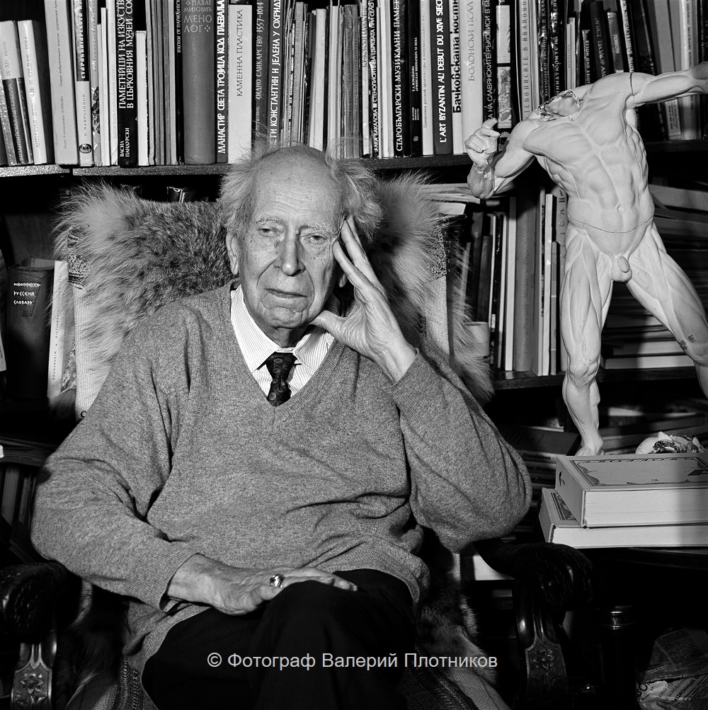 Советский и российский филолог, культуролог, искусствовед ДМИТРИЙ СЕРГЕЕВИЧ ЛИХАЧЁВ родился 15 (28) ноября 1906 года в Санкт-Петербурге. Ушёл из жизни 30 сентября 1999 года в Санкт-Петербурге. На протяжении всех лет своей деятельности являлся активным защитником культуры, пропагандистом нравственности и духовности. "Я, близко познакомившись с Лихачёвым, естественно, задумал его портрет, но на тот момент Дмитрий Сергеевич был недостаточно пожилым для моего кадра (звучит, конечно, чудовищно, но что делать). И я стал ждать: дело в том, что я хотел снять Дмитрия Сергеевича в образе ветхозаветного старца. И вот наконец я дождался. Тогда мы с ним договорились о предварительной встрече у него дома. Мне нужно было осмотреть квартиру, подобрать какой-то антураж, одежду и прочее. Его квартира оказалась в современном квартале, в рядовой застройке… Ничего петербургского, никаких вольтеровских кресел, ничего академического. Этого я никак не ожидал. Правда, имелось огромное количество книг на самоде