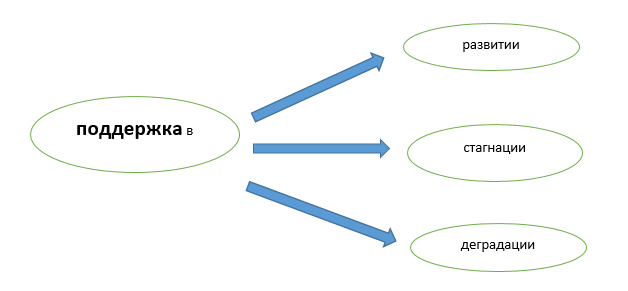 Поддержка- это слово важное. Это слово нужное. Поддержку мы ждем, и мы готовы помогать. Но ведь она бывает очень разной. И не только по содержанию, но и по смыслу. Когда Вы хотите поддержать, то задайте себе вопрос:"А в чем я поддерживаю сейчас?" Поддержка в развитии Развитие - это про изменения, но те изменения, которые "вверх". В качестве примера сразу приходит на ум поддержка детей. Да, 18-летие- совершеннолетие. А если учеба продолжается? Учебу в институте сложно ( по-крайней мере, на первых курсах) совмещать с работой. И, помогая студенту, родители поддерживают его в развитии. Поддержка в стагнации Стагнация (от латинского stagnum — стоячая вода) — это про застой. Не надо путать с временной остановкой. Например, когда человек остался без работы. Но вот если процесс затягивается, если ничего не меняется, то движения нет. Болото... Тут с примером труднее. По ощущениям, стагнация не про долгий процесс ( она достаточно быстро переходит в деградацию). Но все тот же вариант про работу.