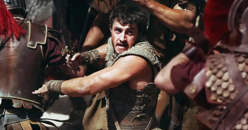 Одно из ключевых различий между двумя фильмами заключается в том, что «Гладиатор 2» — это не столько путешествие героя для Луция Пола Мескаля, поскольку фильм не зациклен на нем, как оригинал был на Кроу. Здесь он больше часть ансамбля, и путь Люция от семьянина до раба и Гладиатора, похоже, происходит за несколько месяцев, а не за годы, которые Максимус трудился на арене.