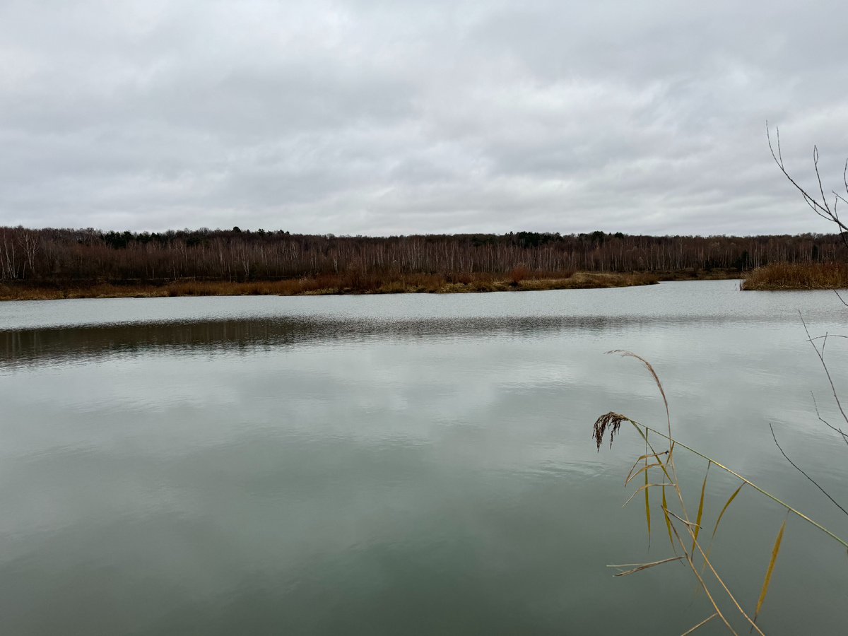 Серое осеннее небо отражается в холодной глади воды Ланьшинского карьера. Желая трава с редкими зелеными пучками обрамляет его блестящую поверхность. Остров, расположившийся посередине карьера, похож на большого морского ежа, утыканного иголками голых кустистых деревьев. Дорожная колея ведет меня от карьера по полю вверх на холм, а потом в густой лес, петляя между темными вековыми дубами. Я открыл новую дорогу от Ланьшино в сторону Поленова через сосновый лес. Быстро мчусь по лесной колее на велосипеде уворачиваясь от луж. И с большим удовольствием вдыхаю вкусный аромат леса. Кайф! В районе деревни Митино я решил сделать привал на высоком холме под соснами с видом на реку Оку. Морс, печенька и красивый вид на величественную реку дали мне силы и энергию на обратный путь! 08.11.2024