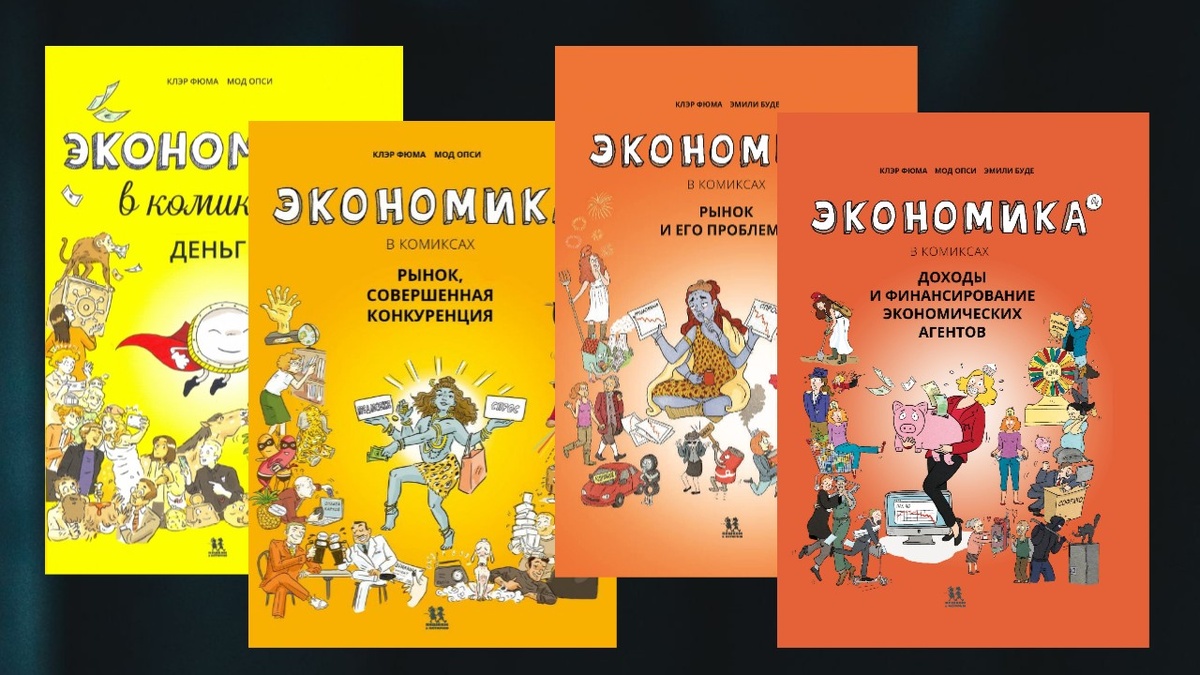 За что я люблю детскую познавательную литературу, так это за возможность на краткий миг погрузиться в разные области знаний - что-то вспомнить, что-то прояснить, а что-то узнать с нуля. Учась в университете, я сдавала экономику только на первом курсе и совершенно не помню, что именно было на лекциях. Зато до этого любила обществознание в школе, где рынок немного, да упоминался. Хотя даже без таких обрывочных знаний, я (как и подавляющее большинство населения страны старше 12 лет) знала бы, что такое деньги, какими они могут быть и что с ними делать в магазине. Но если все же хочется углубиться в историю денег, в законы рынка и прочие интересности из финансового мира, отлично подойдет "Экономика в комиксах", которую написала Клэр Фюма и наглядно проиллюстрировали Мод Опси и Эмили Буде. Консультантом выступил Борис Триподи. К создателям книг мы еще вернемся, но сначала давайте заглянем в 4 тома с "конспектами для школьников". Том 1. Деньги Здесь, как понятно из заголовка, речь идет о ден