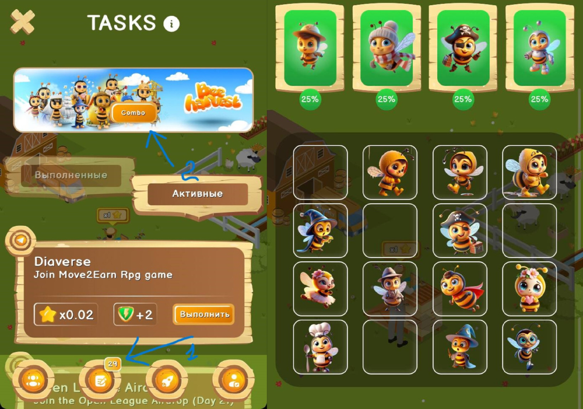 В игре имеется ежедневное комбо пчел, которое находится в разделе заданий. Его всегда можно найти на моем канале.