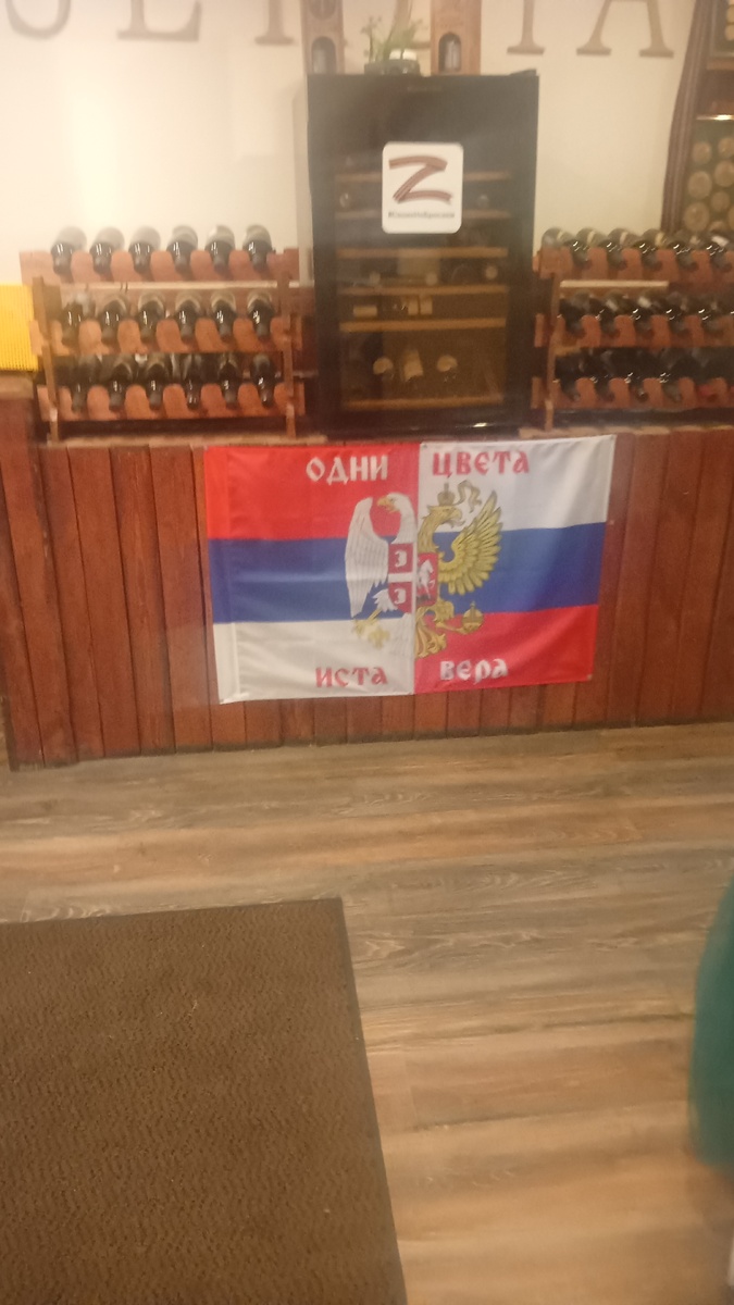Посетила сербский ресторан "Сербия". Адрес: МО, Одинцово, улица маршала Говорова 85. Когда подходила увидела два триколора-сербский и российский . Далее зашла внутрь и сделала ещё одно фото. Заходишь и словно оказываешься на Балканах. Ещё символика СВО. Очень красивый и стильный интерьер в золотых и коричневых тонах. Заказала салат Цезарь . Принесли огромную порцию и там был жаренный бекон, вареная курица. Заказала мохито, принесли освещающий напиток, но льда было многовато . Заказала картофель по-пекарски . Не впечатлил, слишком много лука, а я как вампирша его не ем. Не смогла доесть. Итог: мохито на 4,5 из 5, Цезарь 5 из 5, картофель 3 из 5. Ресторан красивый, официант постоянно спрашивал что понравилось, но первое посещение не удалось. Далее фото чека.