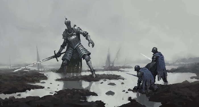 Тяжело дыша рыцарь нашёл сквозь прорези шлема закованного в броню трёхметрового гиганта и превозмогая боль во всём теле заставил двигаться онемевшие от холода, промокшие ноги.