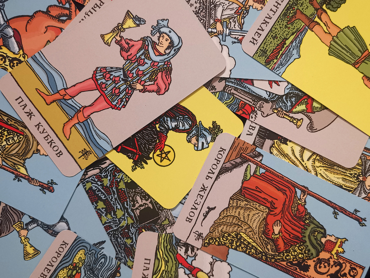 Иногда, придворную карту лучше понять, представив её персонажа в разной обстановке. Для этого можно связать их с какими-нибудь знаменитостями, с любимыми певцами или кинозвёздами. Но чтобы сделать это, вам сначала нужно составить себе достаточно чёткую картинку того, что собой представляет каждая карта. И как только вы поймаете общую идею, связать её с реальностью не составит особого труда и станет понятно кто из них Мэрилин Монро, а кто Дональд Трамп. Можно подойти к делу и с другой стороны: возьмите любимого персонажа и подумайте, какая придворная карта лучше всего бы его изобразила. Можно в порядке упражнения брать какую-нибудь книгу, или фильм, или телевизионное шоу. Особенно хорошо работает любое произведение, где есть четыре чётко определённые группы персонажей. Если вам это кажется чересчур современной игрой, могу вас успокоить: подобная практика была и в самом начале бытования карт в Европе, ещё до Таро. Пол Хьюсон в "Мистических корнях Таро" рассказывает о том, что ещё в эпох