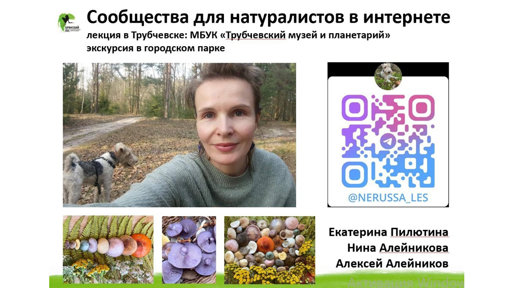 После лекции желающие могут отправиться на экскурсию-прогулку по городскому парку Трубчевска с историков и экскурсоводом Ниной Алейниковой и биологом, кандидатом биологических наук Алексеем Алейниковым. Будем тестировать приложения на реальных природных объектах.