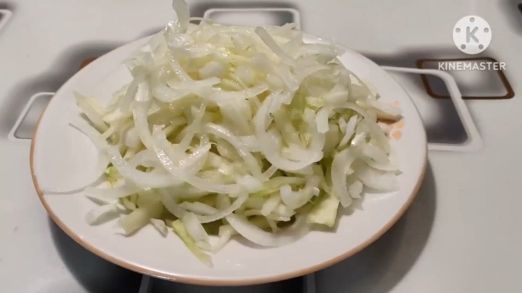 Берем плотную капусту поздних сортов Разрежем качан на несколько частей Нашинкуем капусту Я это делаю ножом Кто-то использует специальную терку Нашинкованную капусту переложим в посуду Насыпем соли Используем нейодированную соль На двух литровую банку соли кладу чуть меньше одной столовой ложки Хорошо разомнем капусту Начнет выделяться сок Укладываем капусту в банку частями Заполнили треть банки и слегка уплотнили Еще положили и прижали еще Оставляем банку при комнатной температуре на один день Банку ставим в посуду Во время брожения начнет выделяться сок, который будет вытекать из банки На второй день прокалываем капусту Я делаю три прокола Выходит газ, который образуется во время брожения Оставим еще на третий день Снова проткнем капусту Накроем капроновой крышкой и уберем в холодильник Получилась хрустящая вкусная капуста Приятного аппетита! Ссылка на видео: Рецепт: Капуста - 2-3 кг Соль - 1 стол. ложка Лук - 1 шт. Подсолнечное масло - 3 стол. ложки Еще несколько салатов