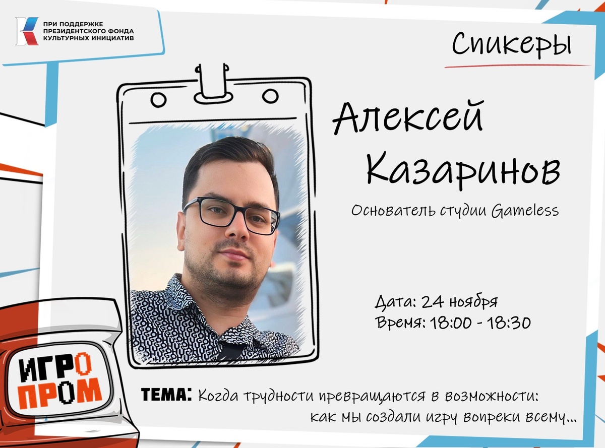 Алексей выступит с темой: Когда трудности превращаются в возможности: как мы создали игру вопреки всему