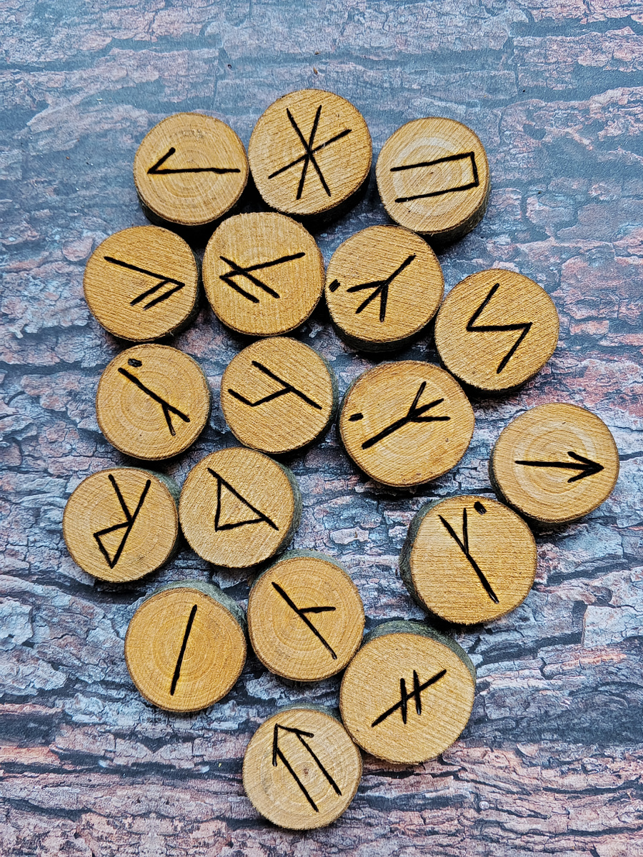 На днях сделала новый набор славянских руны из ольхи. Диаметр примерный 25 миллиметров (погрешность до 3 мм), толщина от 5 до 8 мм. Купить такой набор рун можно в нашем магазине на Ярмарке Мастеров.