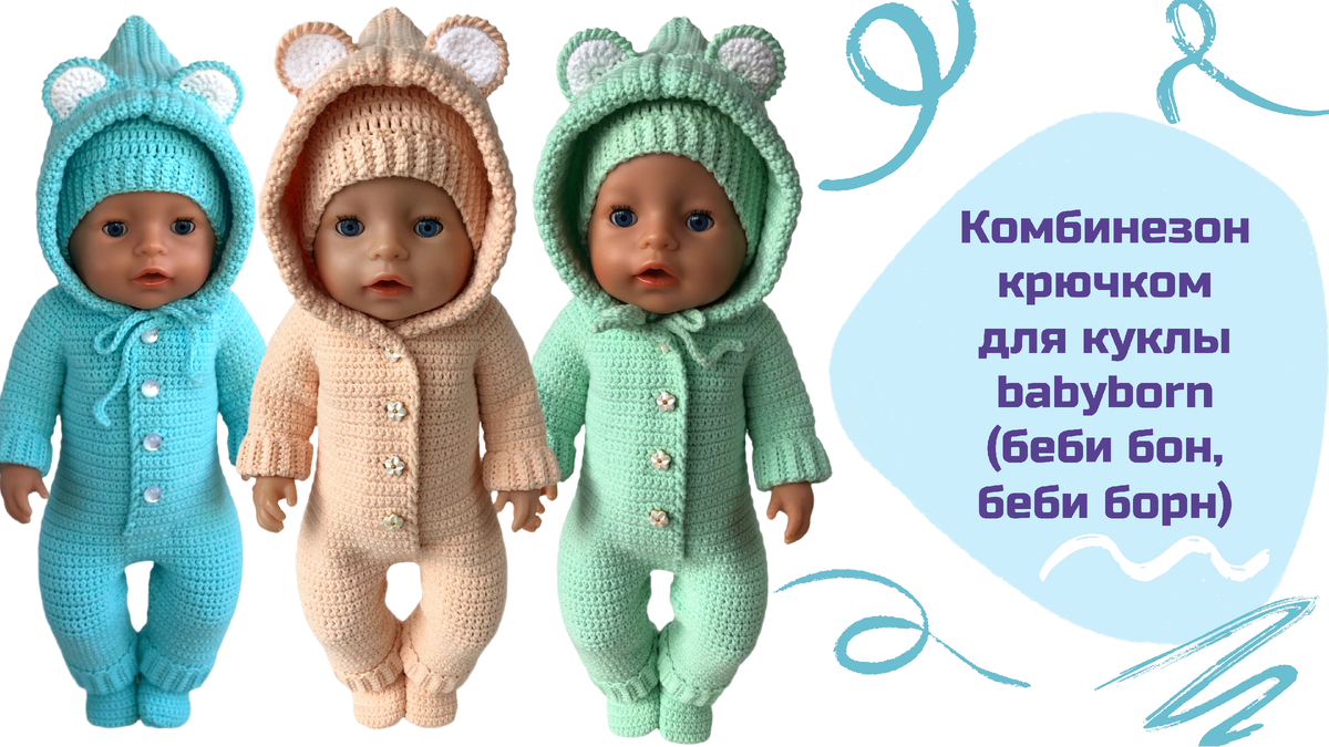 МК комбинезон с ушками крючком для куклы baby born (беби бон, беби борн)