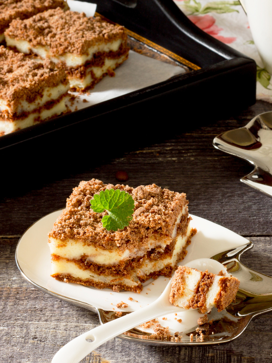 Лёгкий, воздушный и с шоколадным оттенком. Творожная начинка – нежная, крошка – воздушная и сдержанно-шоколадная на вкус. Этот пирог подходит даже новичкам. 📖 Что нам понадобится? ✨Песочная крошка: ✨Творожная начинка: Стакан = 200 мл 👩🍳 Как готовить? 1. Крошка. В глубокой миске смешайте сахар, муку, разрыхлитель и какао. Натёртое на крупной тёрке масло добавьте к мучной смеси и разотрите руками или ложкой, чтобы вышла песочная крошка. 2. Начинка. В отдельной посуде смешайте творог, яйца, сахар, ванилин и крахмал. Если хотите более однородную текстуру, пробейте начинку блендером. 3. Сборка пирога. Противень 20х35 см выстелите пергаментом. На дно формы высыпьте треть песочной крошки и разровняйте её. Выложите половину творожной начинки. Снова слой крошки, затем оставшуюся начинку и сверху – остатки крошки. 4. Выпекание. Отправьте пирог в разогретую до 180°C духовку на 30–35 минут. Приятного аппетита! ⭐️Советы: ✅ Чтобы корочка вышла ещё более рассыпчатой, минут на 10 уберите крошку в