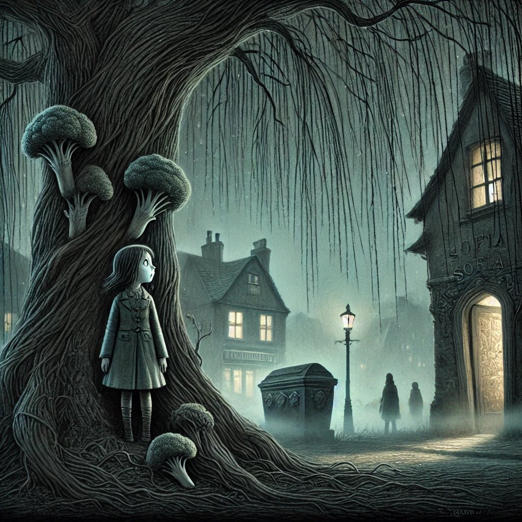 Добравшись до ив, растущих у забора, она остановилась и осторожно раздвинула ветки. Звон приближался. Поравнявшись с кустами, где стояла София, он на секунду замер и сквозь шорох листьев послышался детский смех. София посмотрела на погасшие окна в комнате тёти Бэкки и, выбежав из калитки, бросилась вслед за звенящим в ночи колокольчиком...