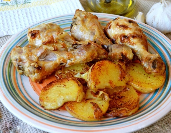 ### Ингредиенты: - Курица (целая или кусочки) — 1.5-2 кг - Чеснок — 4-5 зубчиков - Лимон — 1 шт. - Оливковое масло — 3-4 столовые ложки - Соль — по вкусу - Черный перец — по вкусу - Специи (например, паприка, орегано, тимьян) — по желанию - Свежая зелень (петрушка, укроп) — для подачи ### Приготовление: 1. **Подготовка курицы:** - Если вы используете целую курицу, тщательно промойте её под холодной водой и обсушите бумажным полотенцем. Если готовите кусочки, просто обсушите их. 2. **Маринад:** - В небольшой миске смешайте оливковое масло, соль, черный перец, очищенный и мелко нарезанный чеснок, а также ваши любимые специи (например, паприку, орегано и тимьян). - Выжмите сок из лимона и добавьте его в маринад. Если хотите, можете порезать лимон на дольки для запекания вместе с курицей. 3. **Маринование:** - Обмажьте курицу маринадом со всех сторон. Если у вас есть время, оставьте курицу мариноваться в холодильнике на 1-2 часа (можно на ночь для более насыщенного вкуса)